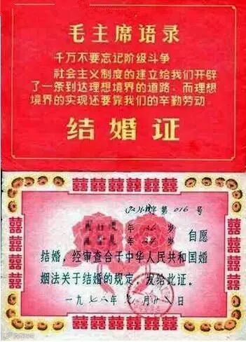 我们的结婚证终于不需要再对着毛主席宣誓了!不过,父母之命、媒妁之言这样的隐藏副本还没有通关。