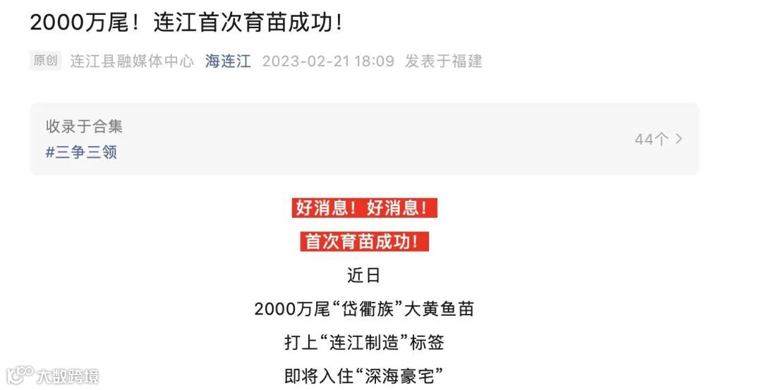 据连江官媒介绍,鑫茂渔业选育了一群优质的“岱衢族”大黄鱼作为苗种,经过3个月的科学培育,终于成功繁育出了首批连江本土制造的“岱衢族”大黄鱼鱼苗。