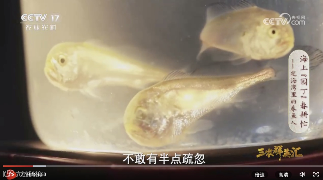 央视农业频道的《三农群英汇》栏目也对培育过程进行了详细的介绍,大黄鱼鱼苗的培育需要养鱼人竭尽心力,不能有半点疏忽。并且,定海湾大黄鱼鱼苗培育成功,为大黄鱼的自繁自养更增一份力量。