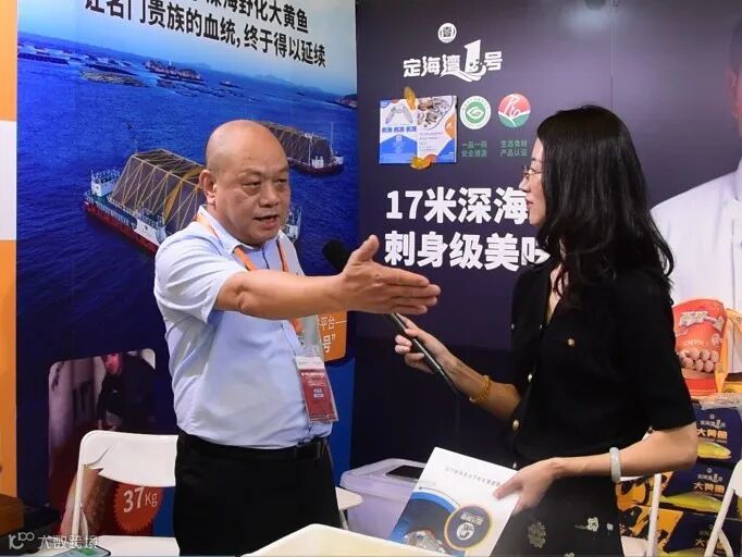 鑫茂渔业,作为福建水产行业代表受邀参展,公司上下极其重视,特地携带17米深海野化大黄鱼参会。“头小、眼亮、鳍修长,体长、亮泽、满金黄”的定海湾大黄鱼,凭着近乎于野生大黄鱼的品相,吸引了众多观众驻足观看和拍照。