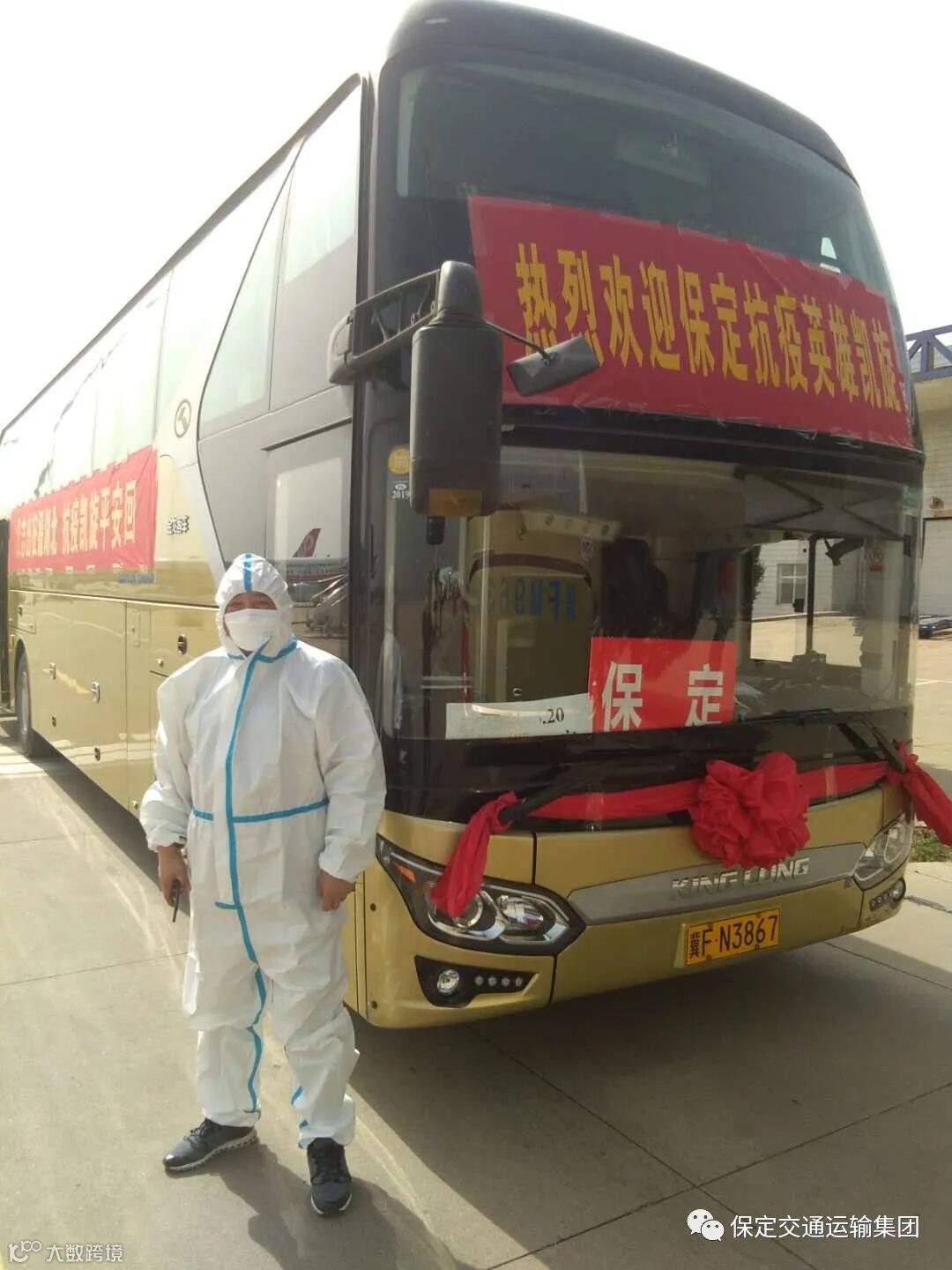 为全力做好由正定机场返回保定的接机任务,3月19日驾驶员苏文革到保定卫健委接受体检、领取防护服,对安全防护等全方面进行统一培训。一公司领导带领各部门相互配合,出具相关手续,对车辆进行检修、通风、消毒,做到安全防护,安全运行,全力做好援鄂医疗队返保运输保障任务,在发车前,苏文革师傅激动地说:“尊敬的白衣天使,大家好,我是保运集团驾驶员苏文革,很高兴能履行约定,在凯旋之日来接大家,山河无恙,幸得有你,在此,我代表保运集团衷心的感谢各位,你们是保定的英雄,欢迎各位回家!”