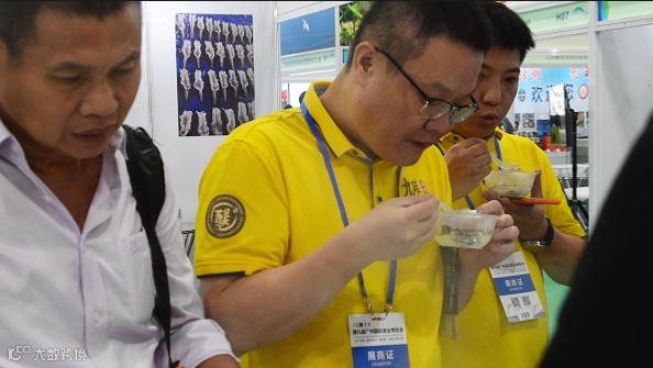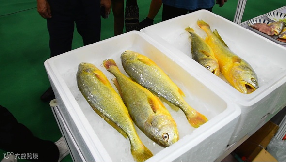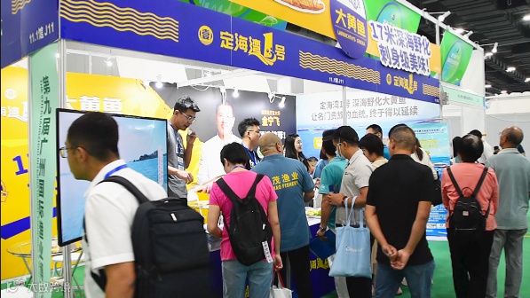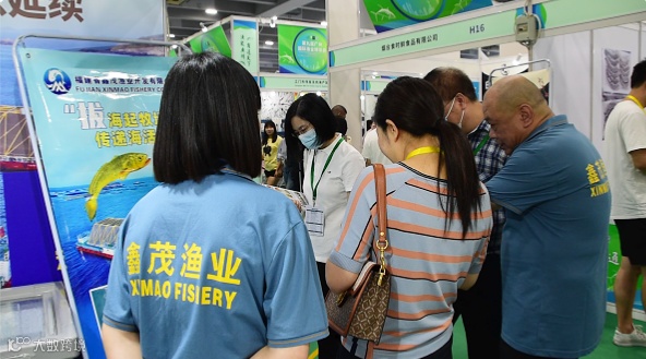 位于会展中心极佳位置的鑫茂渔业展位,从开幕至展会结束,一直围满了,定海湾1号深海野化大黄鱼的意向客户。