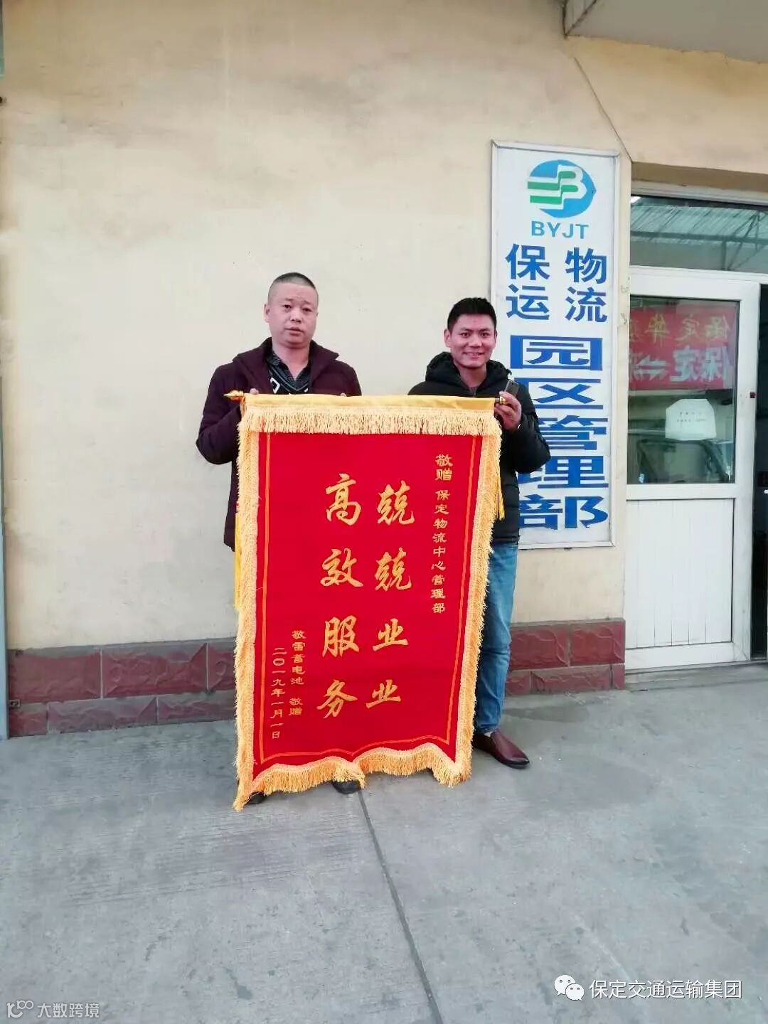 新年伊始,在物流园区经营蓄电池业务的李敬雷将一面写有:“兢兢业业,高效服务”的锦旗送到园区管理部,感谢物流公司细致入微,尽心尽责的服务。