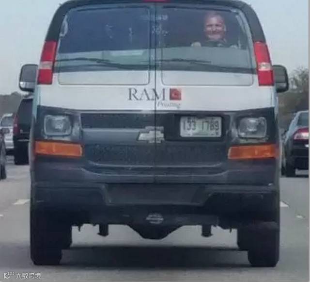 我尼玛这车倒着开啊!?近看才发现是贴纸