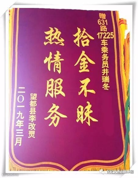 3月14日下午,631乘务员井瑞冬归队后将一部价值2000元左右的华为手机交到乘务队。经过了解,原来井瑞冬在执行定州-保定631班车任务,车辆驶出望都车站后,井瑞冬像往常一样进行途中巡视服务工作,叮嘱旅客按规定佩戴安全带,在空座位上发现一部手机,井瑞冬立即将手机保管起来,归队后第一时间将手机交回乘务队保管。因解不开锁,只能等着失主打电话,直到晚上8点多,手机铃声响起,乘务队值班人员立即接听了电话,原来是失主的朋友打来的,值班人员请失主的朋友转告失主到三公司乘务队领取手机。次日,失主李先生来到乘务队领回丢失的手机,对631乘务员中途服务大加赞扬,为表示感谢,专门定制锦旗一面赠与乘务员井瑞冬。