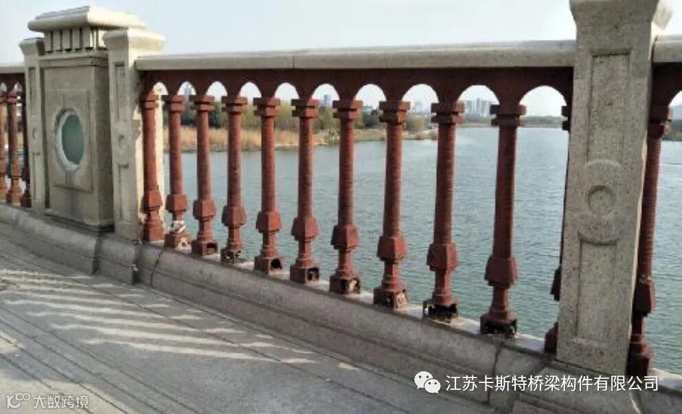 改造前:原为钢筋混凝土防撞护栏,护栏上方扶手为铸造石扶手,扶手开裂脱落严重。