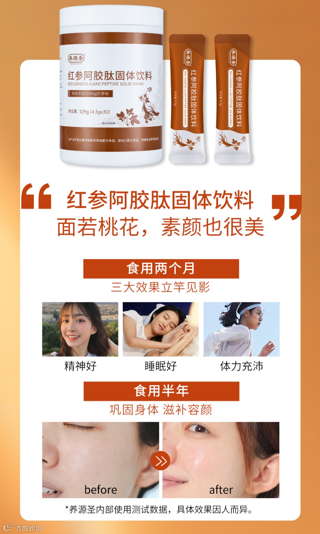 想要身体更健康,那就快来喝红参阿胶肽固体饮料吧~
