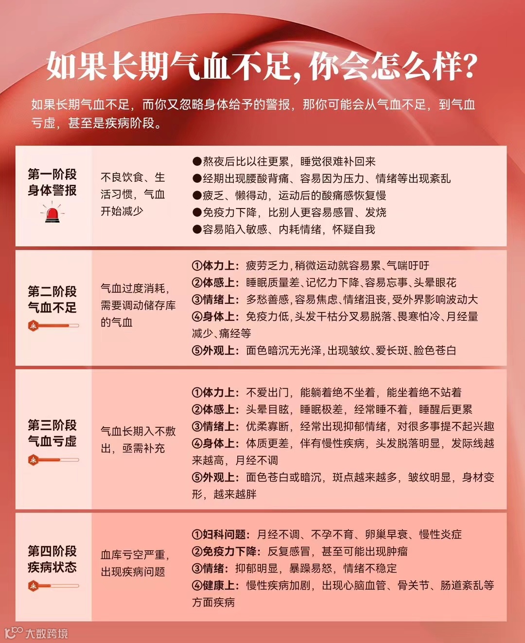 然而,这几个关键时期往往伴随着耗气伤血的过程,使得女性容易出现气血不足的情况。
