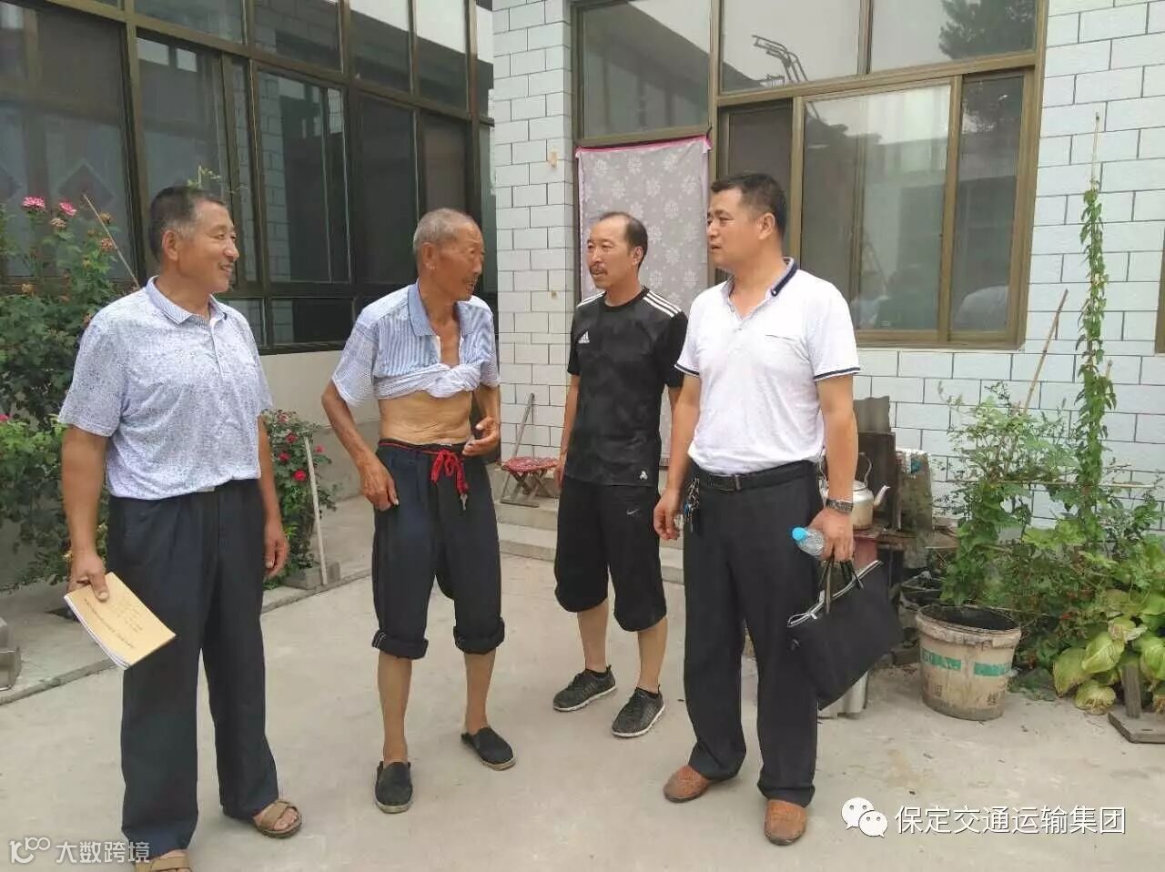 8月3号上午,易县政协副主席杨凤娥同志,在保运八公司刘宣榜经理陪同下,携易县公安局刘副局长、甘河净乡党委书记强书记,一行8人,冒着酷暑,行程百余公里,到保运集团公司包扶的南大平地村督导、调研扶贫工作。