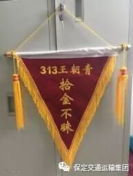 6月27日上午九点,一名翟姓乘客将写有“拾金不昧”的锦旗送到了十公司行车队,并特意对公司领导说:“313路驾驶员王朝青师傅拾金不昧品德高尚,感谢他,感谢十公司”。经核实,事情的经过是这样的,昨天下午3点多,驾驶313路公交车的王朝青师傅在终点站打扫车内卫生的时候在座位夹缝中捡到一个钱包,他立即喊来调度一起打开钱包,发现这个钱包正是刚刚打电话寻找失物的清苑乘客翟先生丢失的,当翟先生来到终点站领取钱包时,激动地说:“里面的现金并不多,银行卡和社保卡丢了都可以补,可是如果照片丢了就再也找不到了,这里面的照片对我来说很重要,谢谢司机师傅,谢谢十公司,谢谢”。