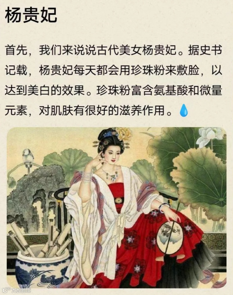 相比较之下,中国古代的美白方法就要安全许多,她们常常使用珍珠粉、白芷等中药材来美白肌肤。