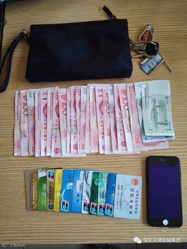 事不宜迟,时间多耽误一分找回的希望就减少一分。队管人员立即核对车牌号,查明此趟出车司机,当给司机打通电话说明情况后,驾驶员杨洋微笑的说:“告诉他,放心吧,我已经发现了这个钱包,保管完好,现正在返回保定途中。”队办室立即给这位吉林的失主去电话,把这个好消息告诉他,得知消息后小伙子一时语塞,激动的已经不知道说什么好,只剩下哽咽。