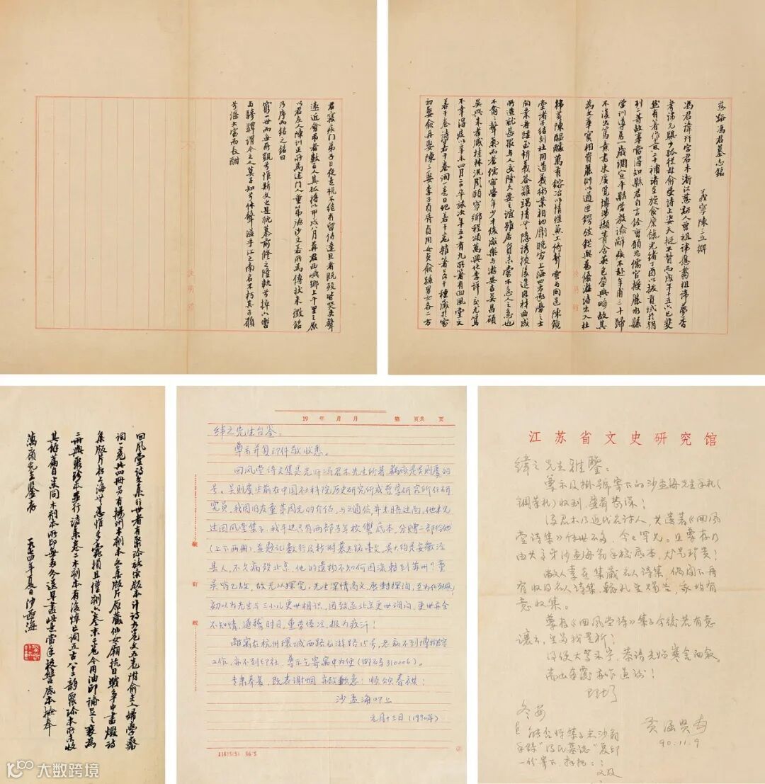 LOT0029 《回风堂诗文集》二册(沙孟海题跋、手校);沙孟海手录陈三立撰《冯氏墓志铭》全文(墨迹);沙孟海致纬之信札1通;黄涵贤致纬之信札1通