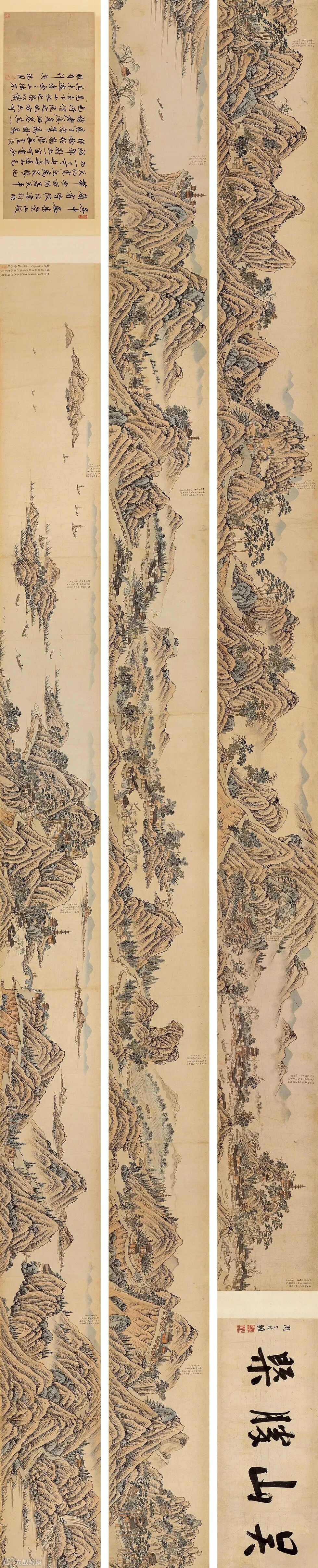 设色纸本 手卷 引首41×103cm;画41×1722cm;跋37×85cm