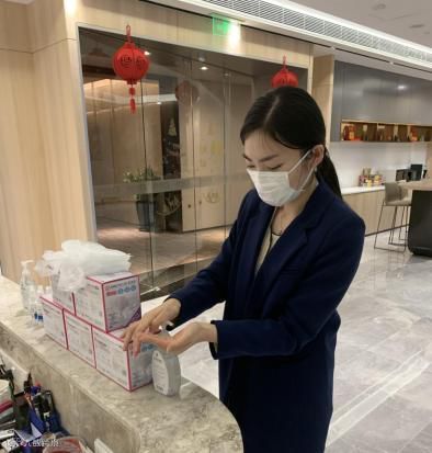 你不必担心这个特殊时节下的防护,你一出电梯就可以看到酒精、免洗洗手液,安全进门后还可领取每日2个口罩;