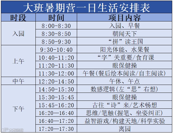 2. 大班暑期营:面向2025秋季即将上小学的毕业班幼儿