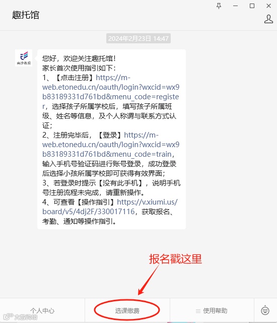 或进入【托管学堂】,点击【报读课程】,若出现已缴费的课程,则代表成功报课。