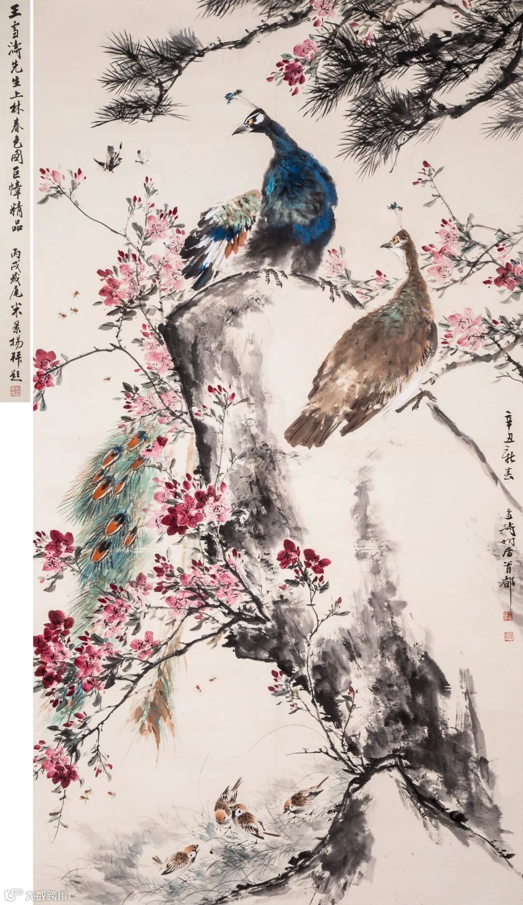 边跋:王雪涛先生上林春色图巨幛精品。丙戌岁尾米景扬拜题。