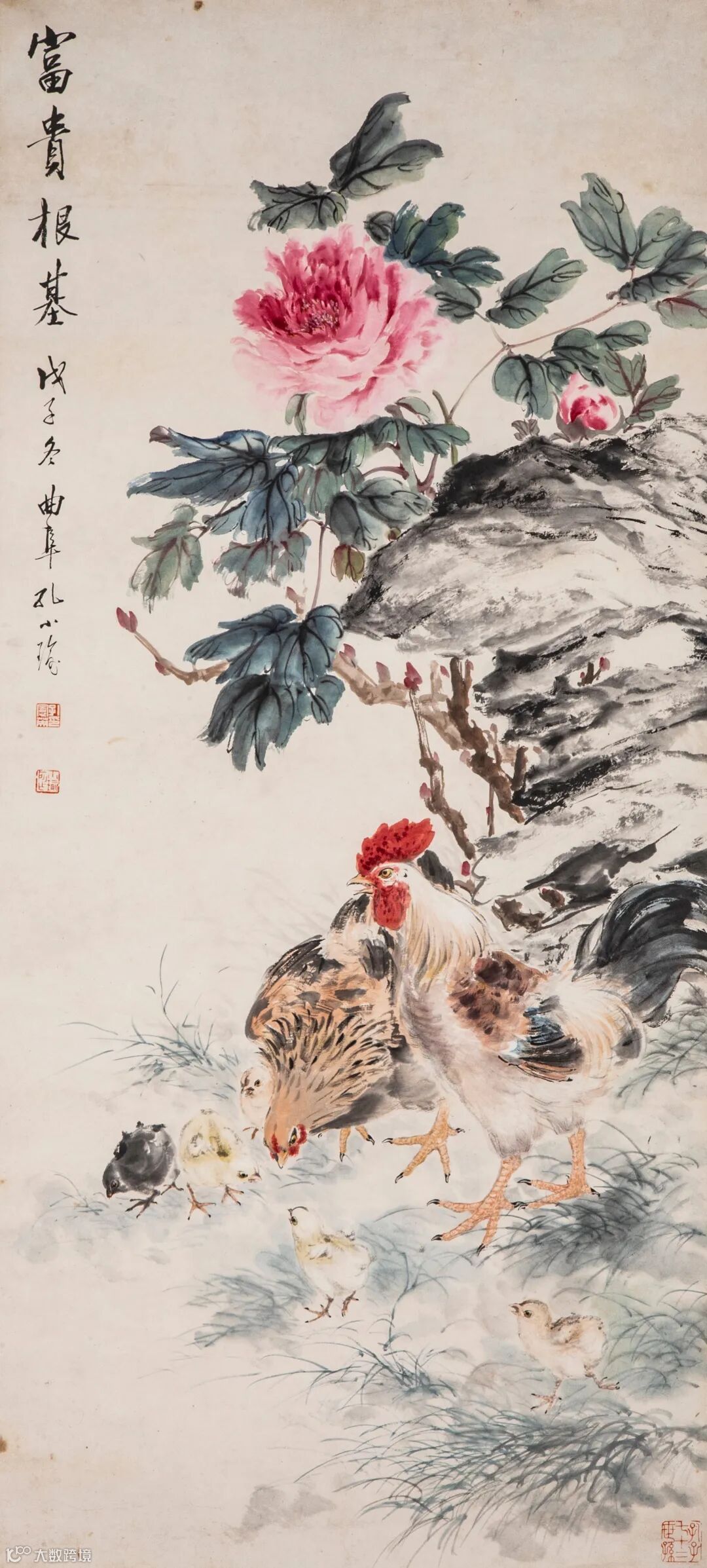 钤印:张爰之印(白文)、大风堂(朱文)、百岁千秌(朱文)、大千豪发(朱文)