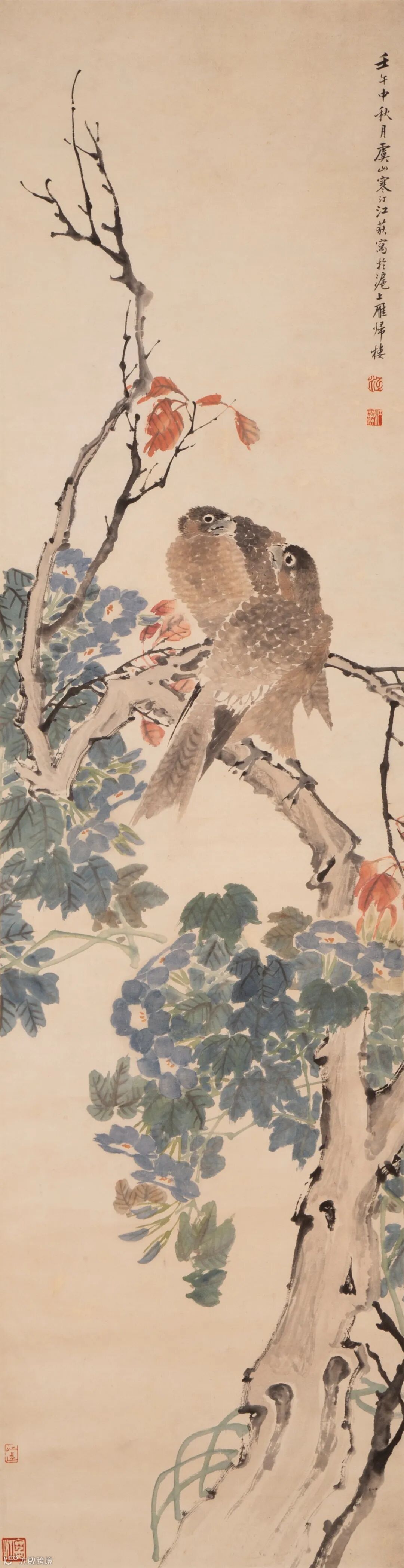 钤印:王雪涛印(白文)、迟园(朱文)、米景扬印(白文)