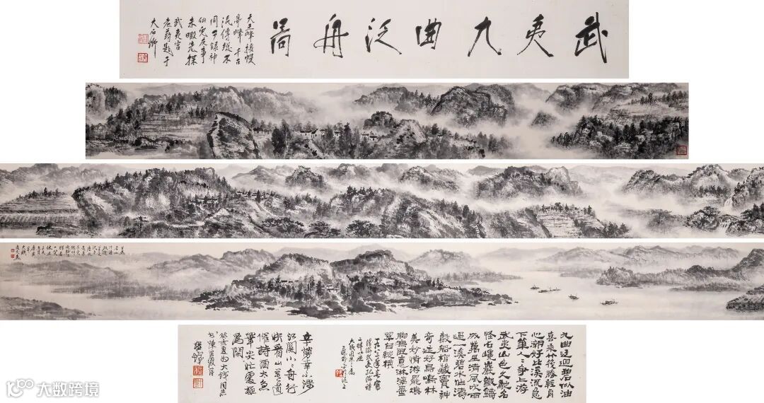 水墨纸本 手卷 引首13×82cm;画13×361;题跋13×85cm