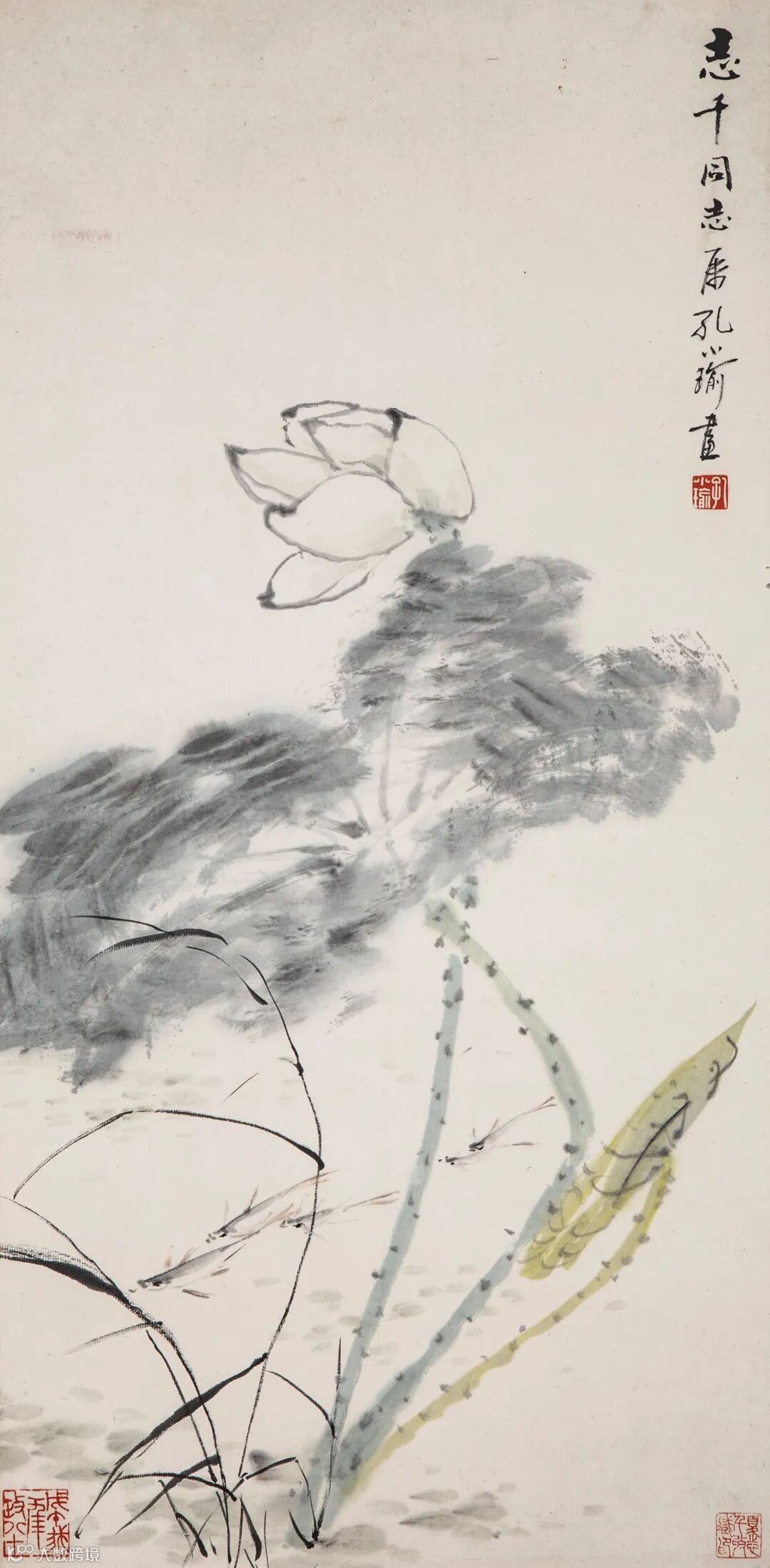 钤印:王弘力(白文)、东涂西抹七十年(朱文)、长乐(朱文)、丹青不知老将至(朱文)、不亦乐乎(朱文)、江湖夜雨十年灯(白文)、虽不中不远矣(朱文)、王(白文)、弘力(朱文)、弘力之印(朱文)、王弘力印(白文)