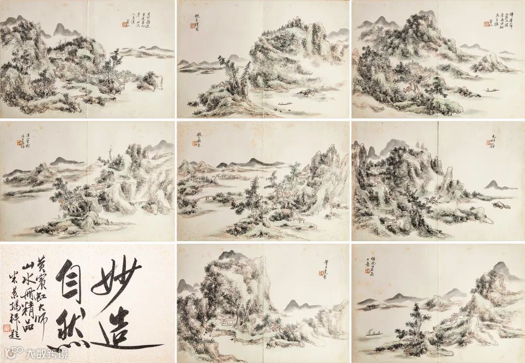 题跋:妙造自然。黄宾虹大师山水册精品。米景扬拜题。