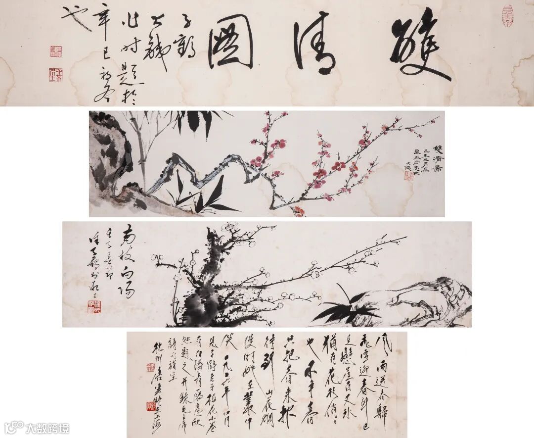 引首20×100cm;曹大铁画20×67cm;徐子鹤18×68cm;唐云题20×50cm