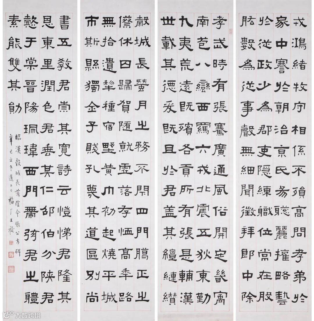 款识:临《汉榖城长荡阴令张公方碑》。辛巳立冬后二日,福厂王禔。