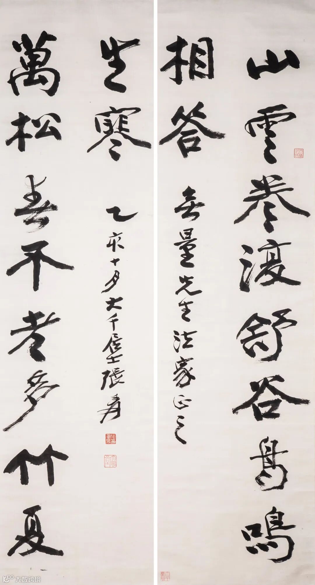释文:山云卷复舒,谷鸟鸣相答。万松春不老,多竹夏生寒。