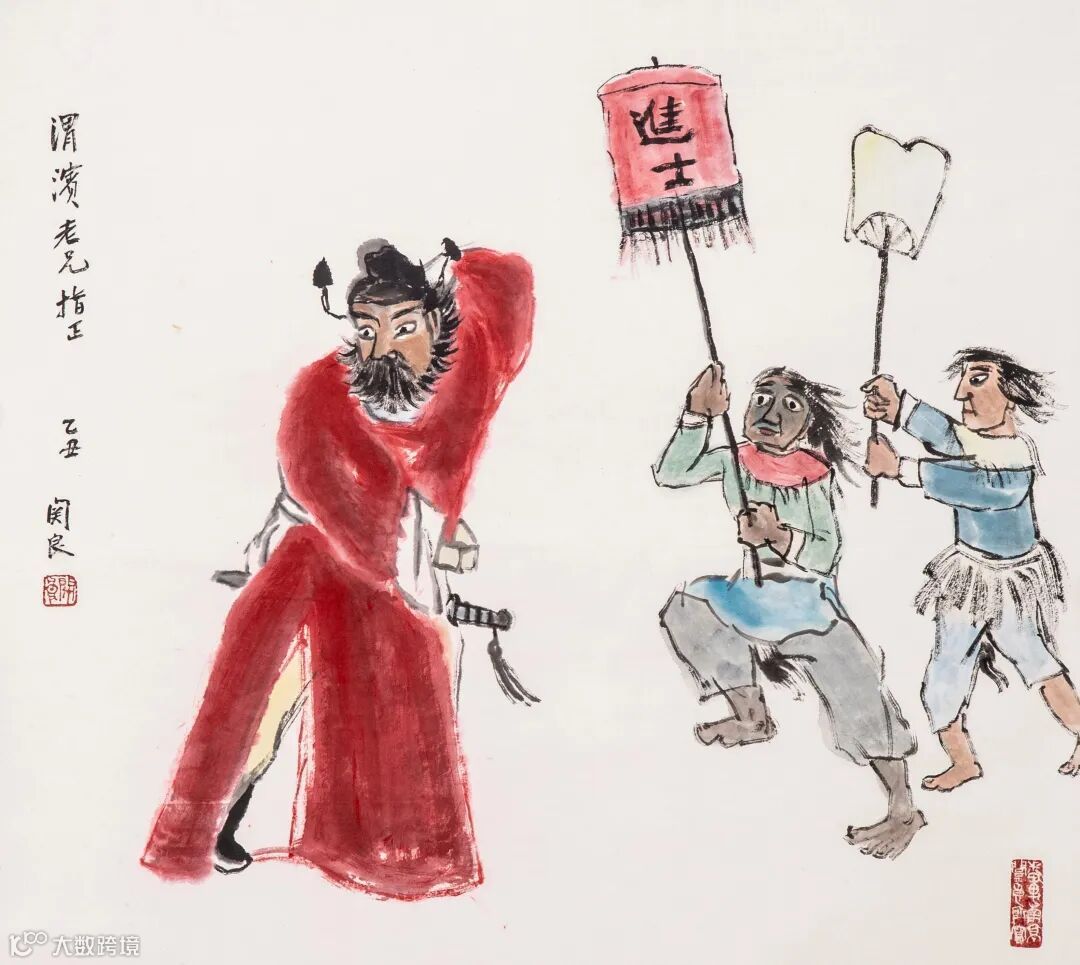 款识:渭滨老兄指正,乙丑関良。