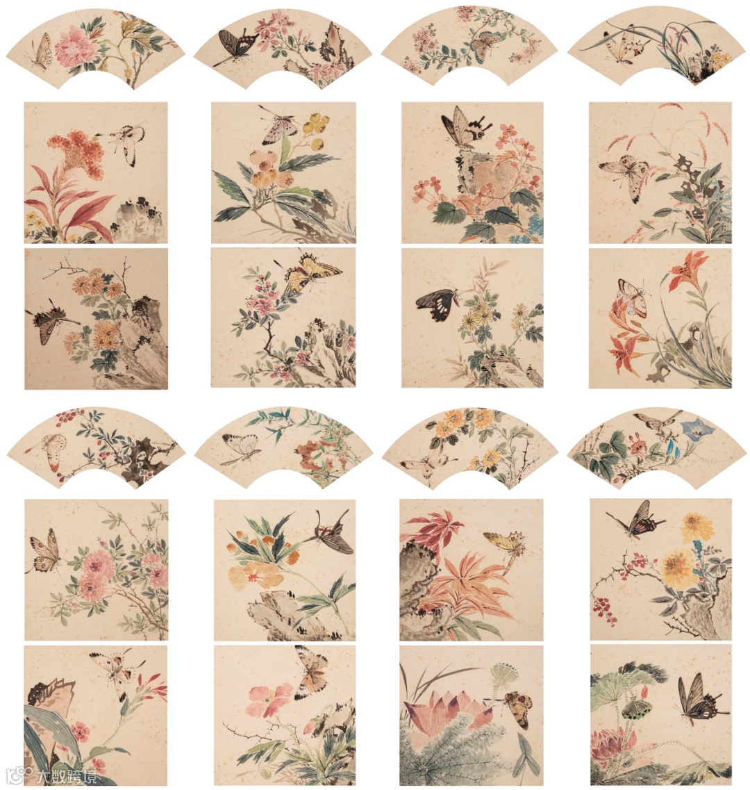 LOT0175 佚名 百蝶图·扇面小品·八条屏