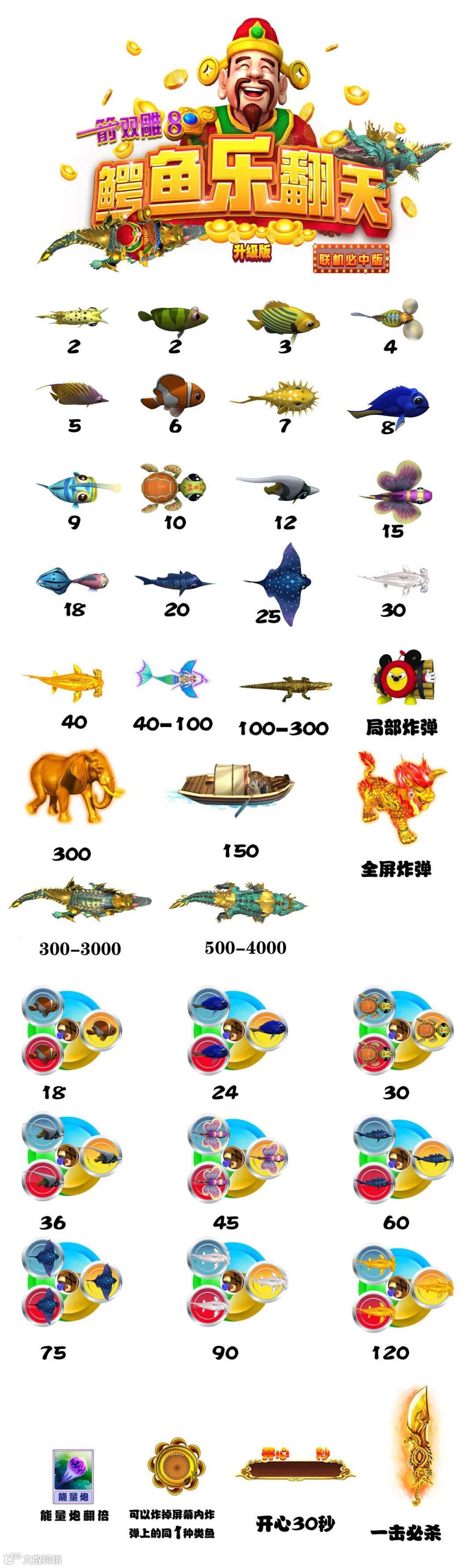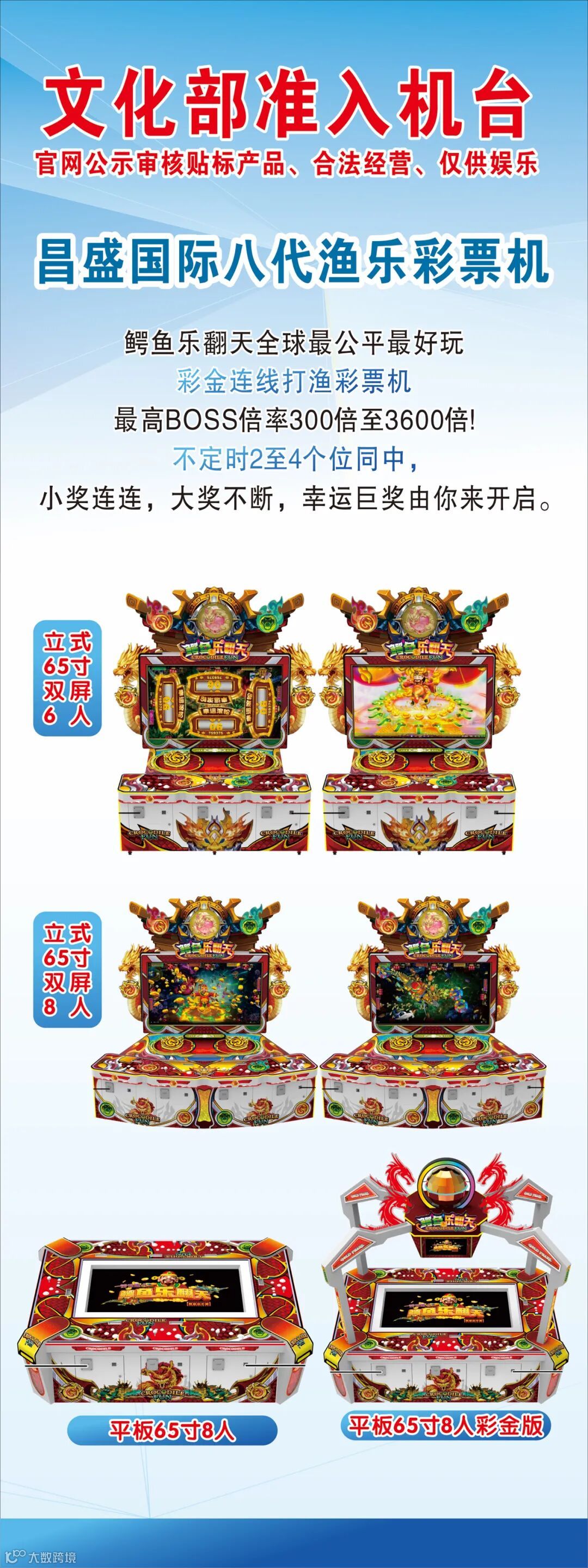 昌盛最新款,首创全功能,带全屏炸弹,局部炸弹,开心30秒,一击必杀,首创2条大鳄鱼boss300-1500,500-2000,海盗船,美人鱼,金象,麒麟,鳄鱼公园组合鱼,三色鳄鱼天降财神,摇钱树2,,同类炸弹,更多惊喜等你发掘,性价比贼高,搭配首选,场地反馈人气火爆😸,首创2种玩法功能可选,2选一,请认准广州萌禾贸易有限公司的正规合同,以免买到假货,上当受骗:支持机型立式65寸4人,双屏65寸6-8人,平板65寸8人,豪华65寸带彩金8人