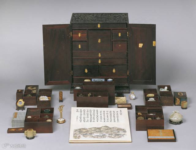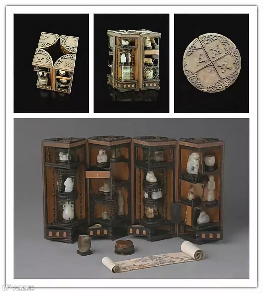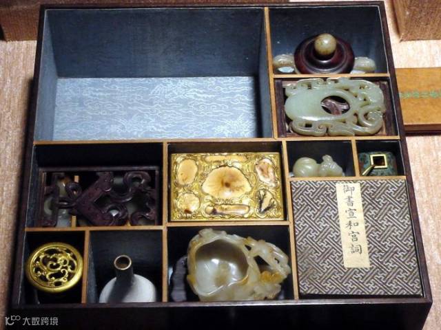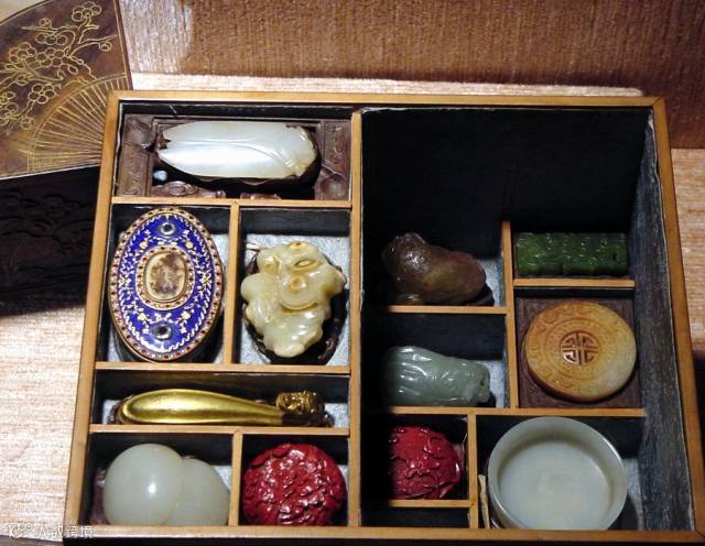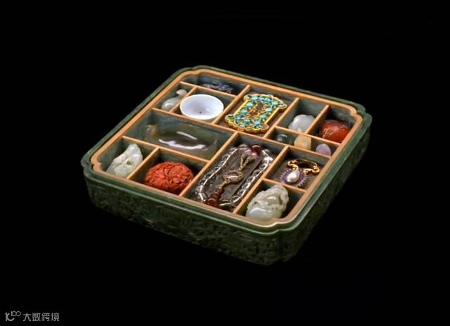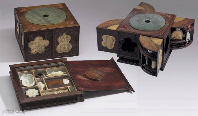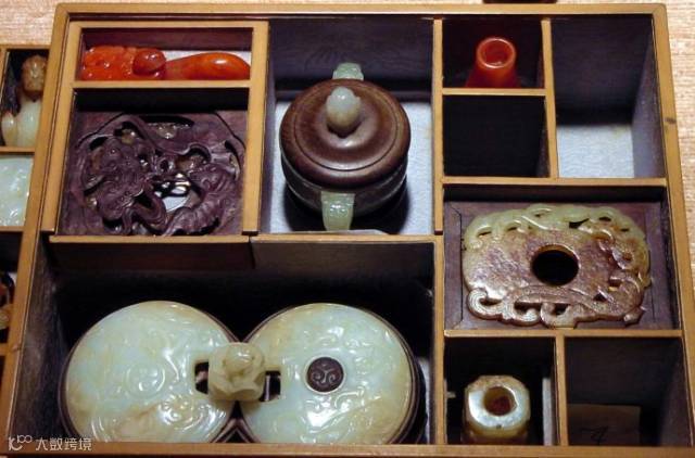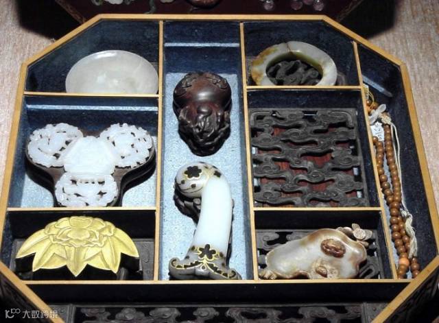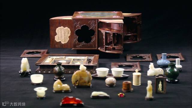 打开来看,不同的空间摆放着大小不同的珍玩,严丝合缝,不浪费一丝空间;