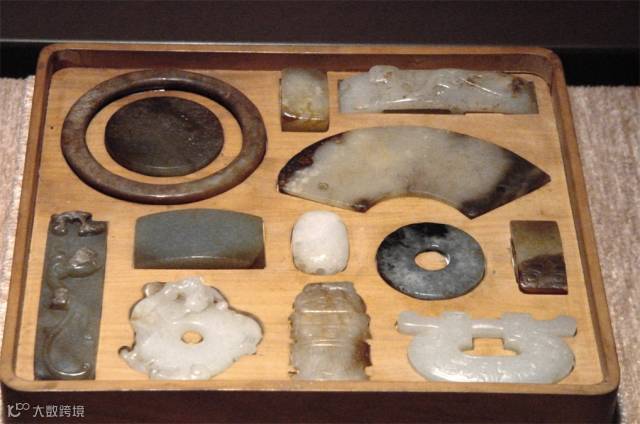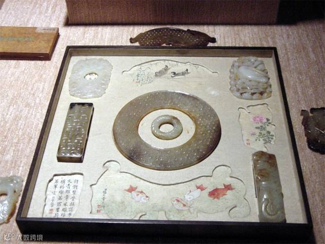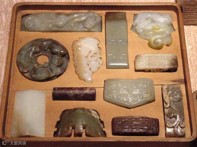 值得一提的是,托盘里选的玉器都是片状的,托盘底部按照每一个玉器的外部轮廓,分别挖出凹槽。