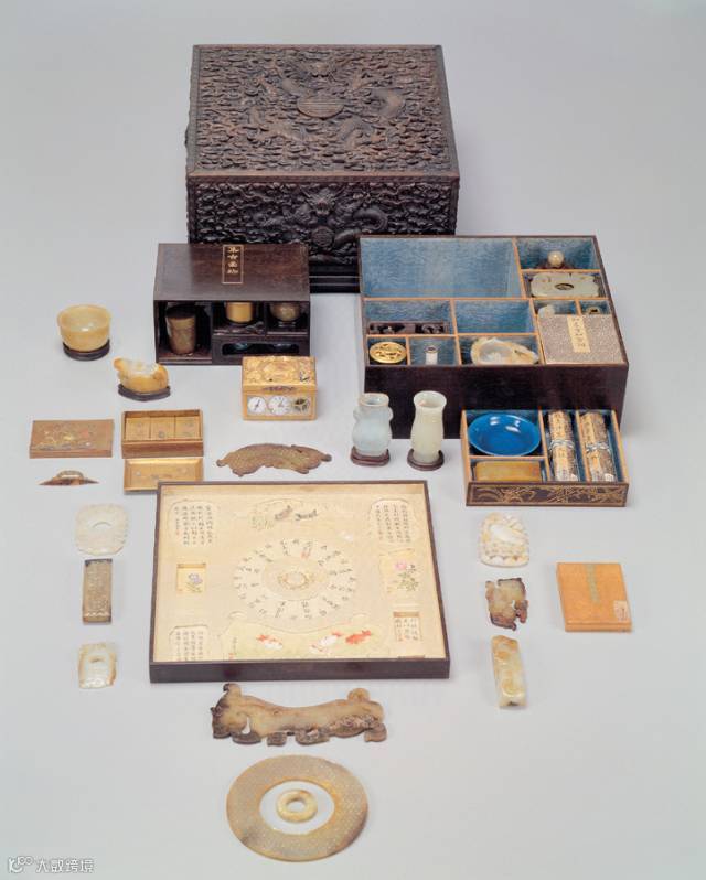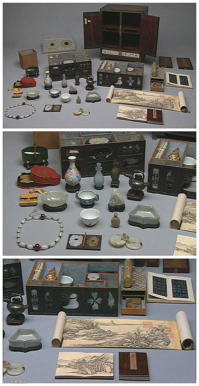 从清宫《内务府造办处活计清档》来看,收藏在宫廷中的珍玩会被分以等级,头等收于“多宝格”,次等或更次等则置于“百什件”和“万宝箱”中。