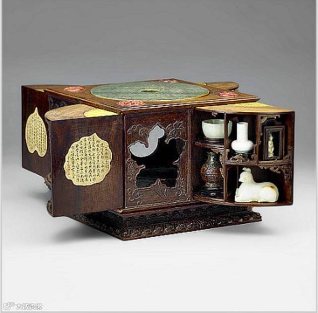 据说,有些设计巧妙的多宝格,让人即使看到格中、抽屉里或隔板旁有宝物,也因找不到机关而拿不到。
