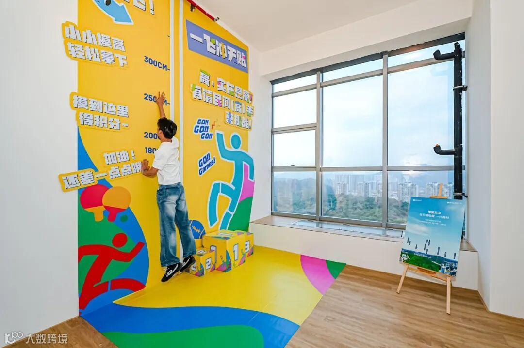 拳击区里,一位白领青年正对着不倒翁目标连续出击,汗水随之挥洒,一分钟后,他长舒一口气,笑容舒展。而在清水样板间的跳跃挑战区,也有一位能量满满的青年努力向上跃起,试图将贴纸贴得更高——每一次腾空,都是对自我的小小突破。