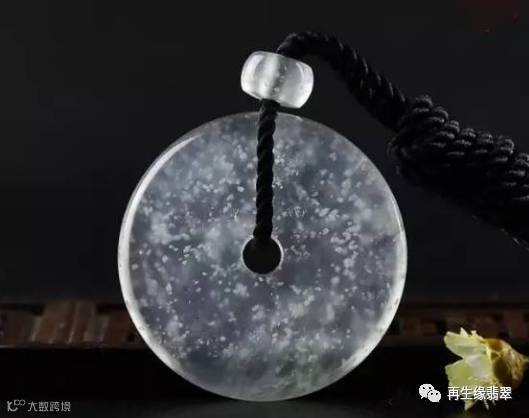 雪花棉要和极佳的种水相结合,才能显出雪花的点点皆清莹,粒粒如霜雪的美感,使明净如水的底子增添如诗如画的意境。好的雪花棉不是飘在翡翠表层,而是隐入翠件内部,透光很明显,佩戴起来却又若隐若现,棉点最好较细小,分布要均匀,显得轻盈秀气,数量要适中,过多则失去灵气,过少又失了漫天飞扬的氛围。