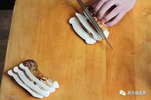 简单的切片烤一下。烤制时,若要翻动松茸,不能用筷子,必须用手翻,你的手要去感觉松茸的受热程度。