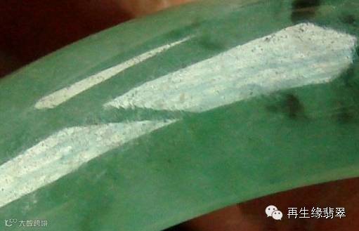 接下来,给一张A货的翡翠的照片,这个是结构比较明显的新坑种翡翠