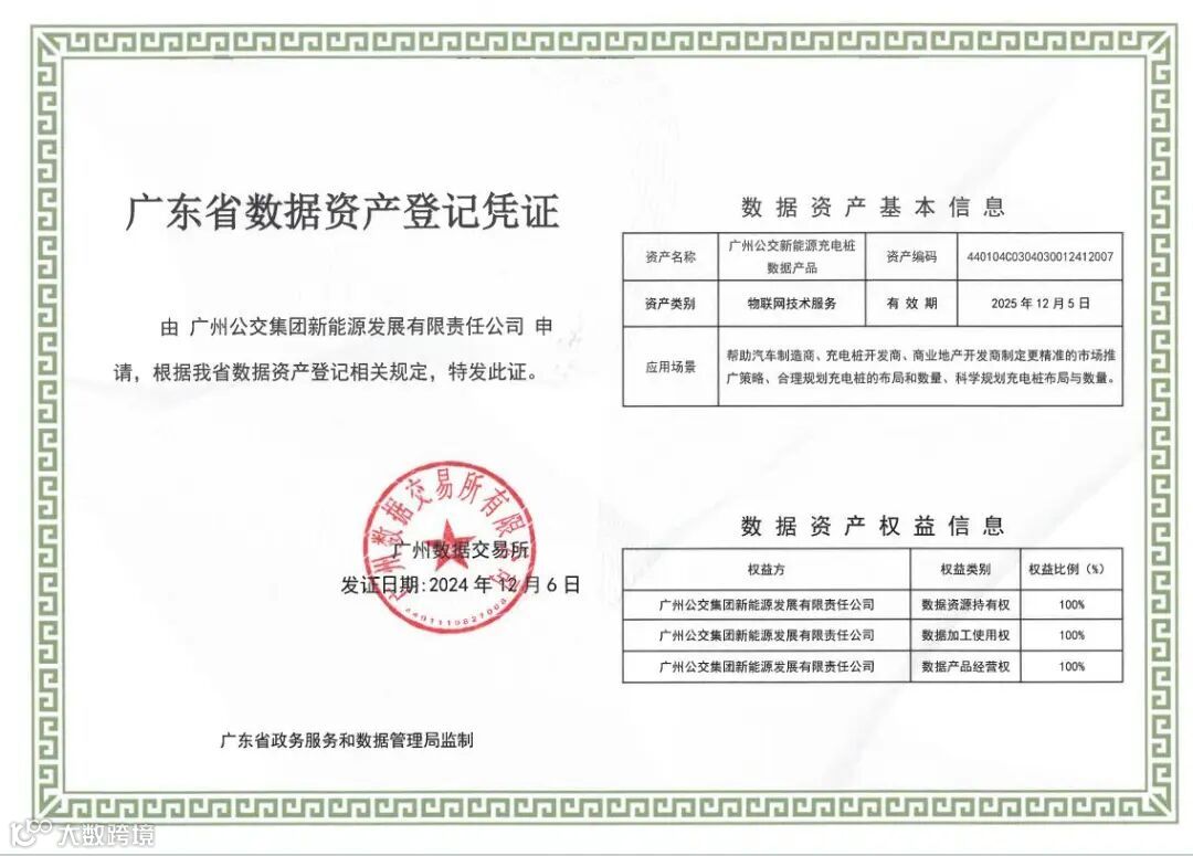 近日,广州公交集团新能源发展有限责任公司顺利完成“广州公交新能源充电桩数据产品”登记工作,标志着新能源公司在数据资产化方面取得了阶段性成果。这一数据产品旨在深度挖掘充电桩使用数据及车辆充电过程中的关键信息,为相关需求者提供有价值的信息,助力新能源产业的持续发展。