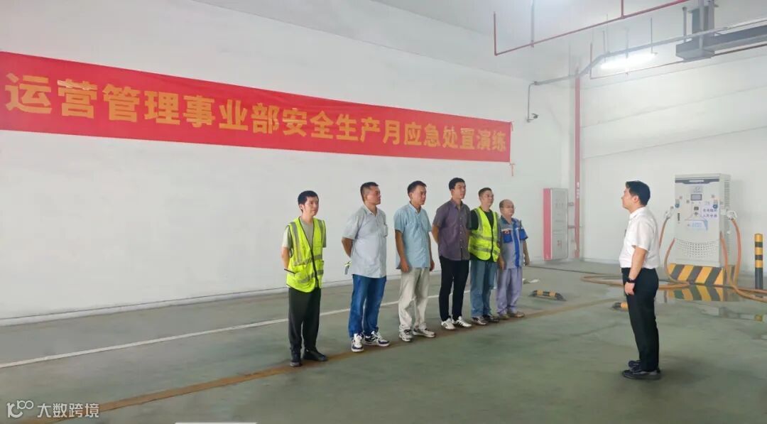 2025年6月是全国第二十四个“安全生产月”,新能源公司紧扣“人人讲安全、个个会应急——查找身边安全隐患”主题,于6月5日下午在新能源石马产业园组织开展车辆自燃应急处置演练。本次演练由运营管理事业部及生产经营部牵头组织,联合安全技术工程部实施,充电班组、移车人员、监控员等相关人员共9人次参与。