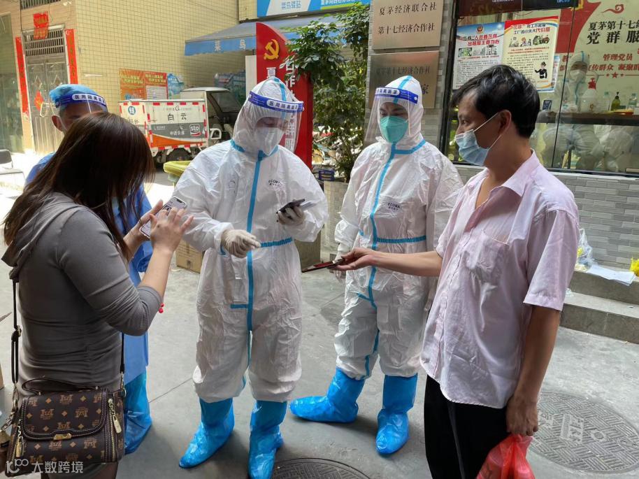 王智星、陈鑫同志是白云区夏茅村疫情防控网格六组成员,自21日协助当地完成大规模核酸检测任务后,他们便开始承担红码人员的系列管理任务,负责开展人员转运、信息核对、门禁系统安装、上门采样等事务。责任重大,但他们鼓足干劲,有条不紊地逐一落实。