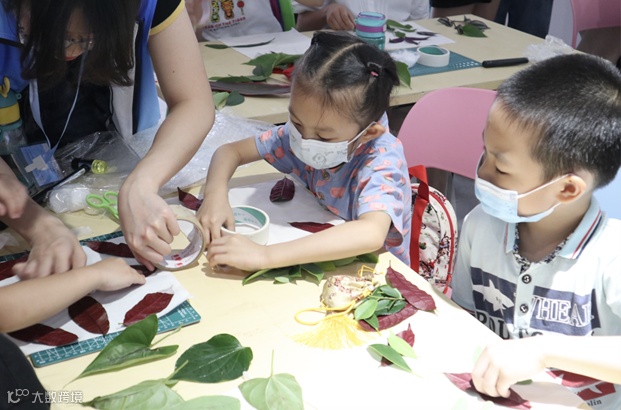 志愿老师还给小朋友们特别介绍了树叶拓染这一非遗项目,并通过视频细心讲解了制作树叶拓染的流程,小朋友们发挥奇思妙想,选择了自己喜欢的树叶并进行构思,热火朝天的固定、敲拓过后,小朋友们都制作出了属于自己的有趣的树叶拓染作品。