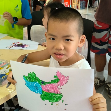 小朋友们根据志愿老师对中国四大地理区域的特产、气候、植被等情况的介绍,自己动手描绘版图,在国家轮廓图上的相应区域进行绘画,对中国的地理概况有了更清晰的认识,也了解到祖国原来是一个幅员辽阔、物产丰富的国家,明白了保家卫国、寸土不让的重要意义。