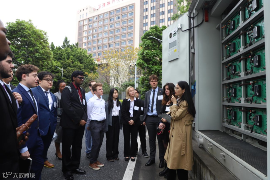 芝加哥大学学生代表团现场参观了公交车退役动力电池梯次储能示范站项目。该项目是大湾区公共交通领域首个梯次储能项目,利用公交车退役电池建设,可对退役公交车的磷酸铁锂动力电池进行梯次利用。