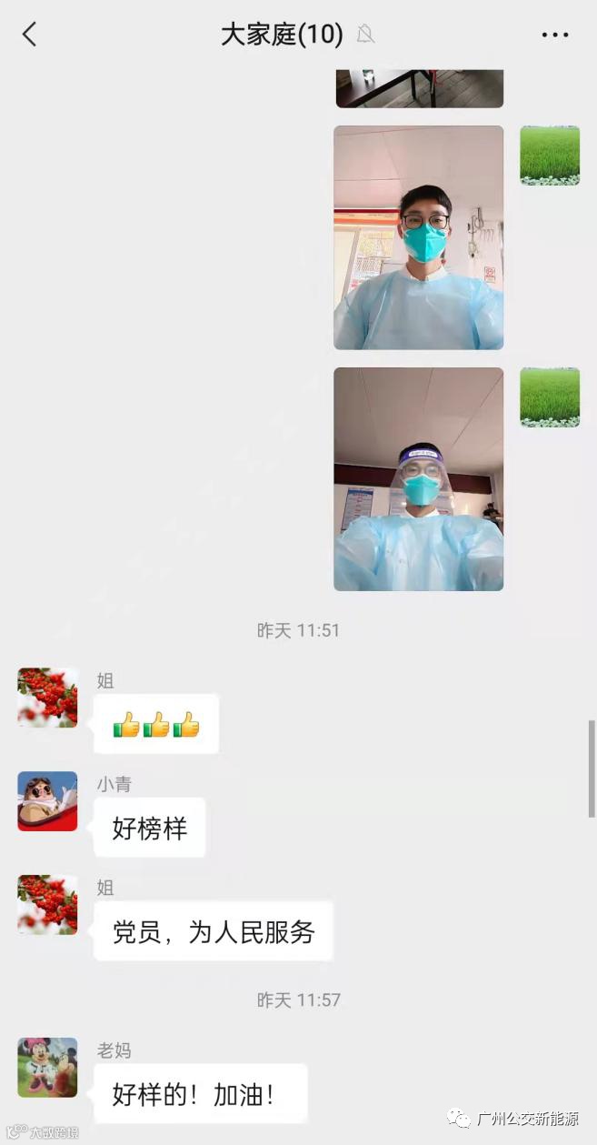 家人对他的决定同样鼎力支持。休息时间,他将工作照片发至家庭微信群中,各个家人消息不停,仔细一看,全是点赞,“党员,为人民服务!”“好榜样!”“好样的!加油!”,来自家人的鼓励,更为他注入了绵绵不绝的奋斗力量,“我与家人虽不在一处,但心连着心,都是为了守好广州大家庭。”