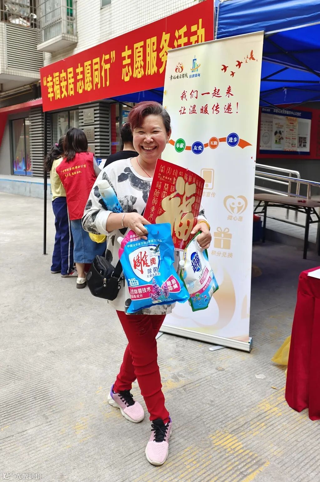 志愿服务居民积分兑换活动也在如火如荼开展。居民通过“幸福安居有我”微信小程序,以“参与志愿服务—获得积分—兑换物品”的形式,让志愿活动“积”出幸福,“换”来实惠。“做社区志愿服务,能帮到别人,我很开心,还能兑换礼品,更开心了。”经常参与志愿活动的阿姨,通过积分兑换了一大袋洗衣粉。