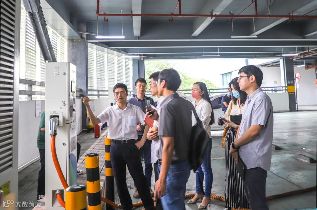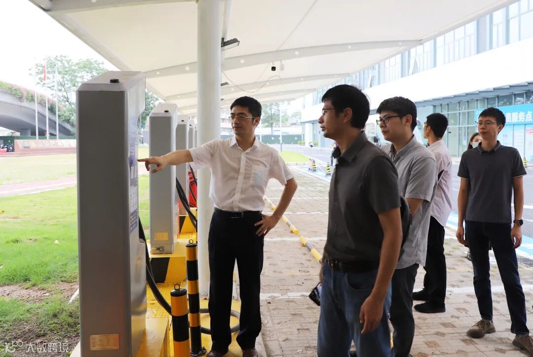 经理宋晓东一行首先前往新能源产业园(燕岭),到园内超级充电桩、各楼层停车充电区域、办公区域、汽车维修区域进行参观考察,实地了解新能源产业园(燕岭)场地充电桩规划布局、产业园综合开发等情况。